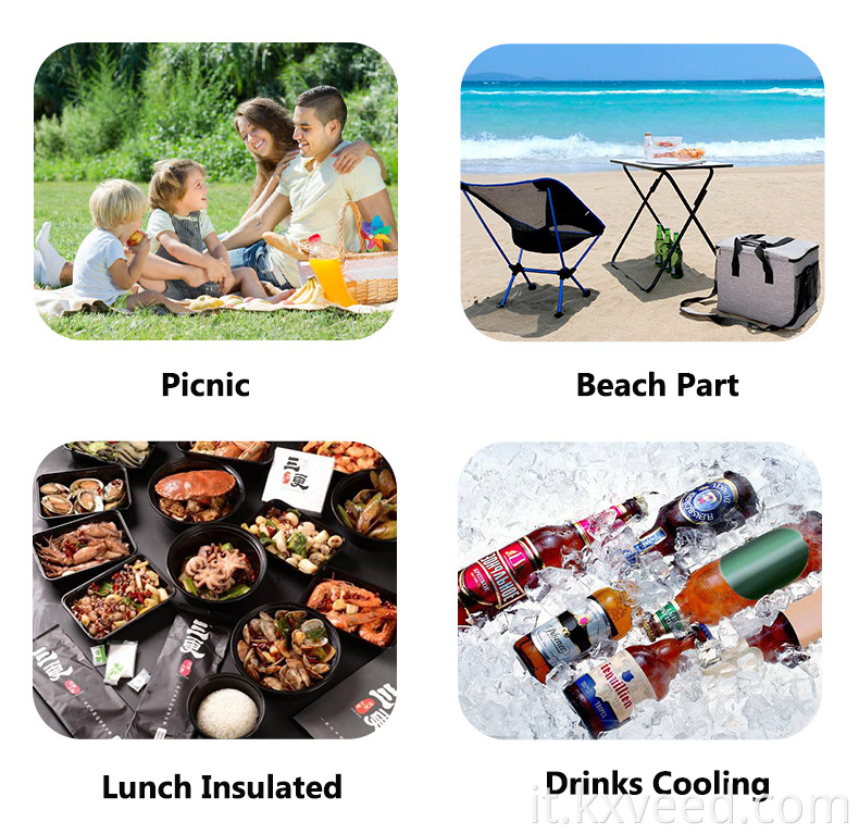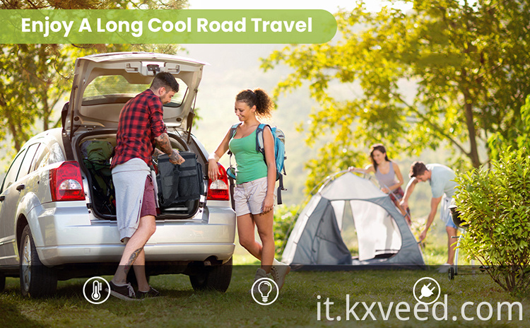 Questa borsa più fresca per auto è ottima per mantenere le bevande o la frutta fresche e fresche. Con la borsa più fresca, puoi portarla ovunque tu vada. È un uso perfetto quando sei in campeggio, viaggio su strada o viaggi.
